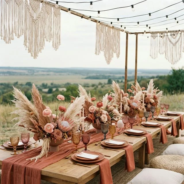 Inspirations visuelles, moodboards, tendances déco mariage et intérieur. Centres de table, thèmes bohème, champêtre, minimaliste, terracotta, fleurs, arches et signalétique.